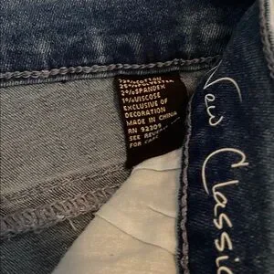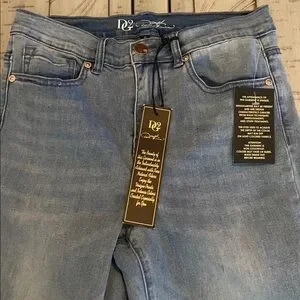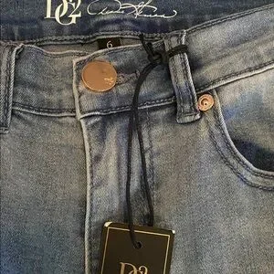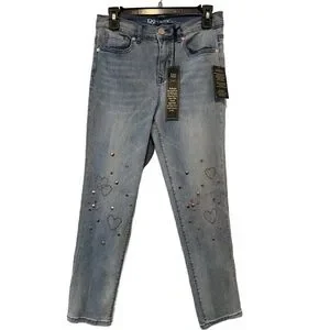 DG2 New Classic Stretch Denim Embellished Heart Jeans Chambray 6 New