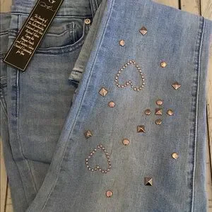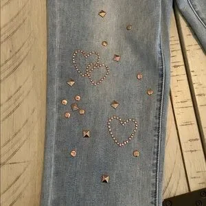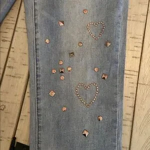 These jeans are not only comfortable but offer nostalgia with the studded heart embellishment design on both legs