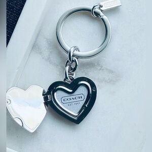 Stylish silver heart keyring with detailed accents. Ideal for adding charm to your keys.