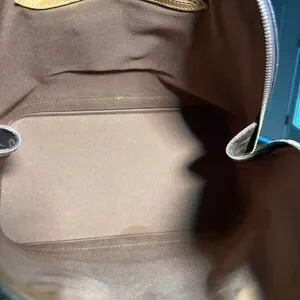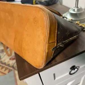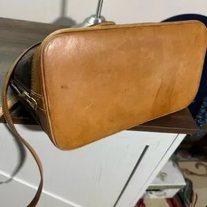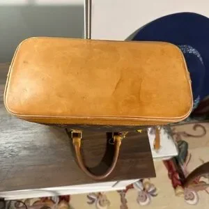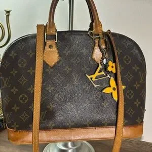 Chic satchel with iconic monogram. Features brown and tan leather. Includes yellow floral L/V charm. And detachable strap.