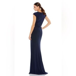 Size 10 navy blue formal dress Radiant V-neck Long Slit Dress by Mac Duggal New