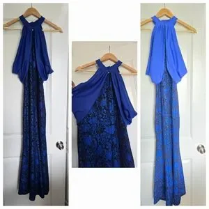 Step out in style with this elegant blue lace halter dress. Perfect for any occasion, this dress combines sophistication with comfort.