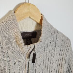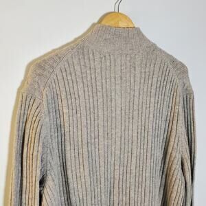 Tasso Elba light grey Lambswool zipper ribbed sweater jacket Size XL