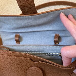 This elegant brown leather belt:crossbody bag is perfect for any occasion. Its sleek design and versatile color make it a must-have accessory. See video for full condition. Garment bag included. Nicely used.