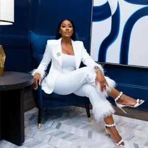 Bridal shower? Birthday brunch? Girl boss photoshoot ? She’s so fitting for it ALL! How perfect is the suit ?! Whatever special occasion you plan to attend this suit is perfect!!