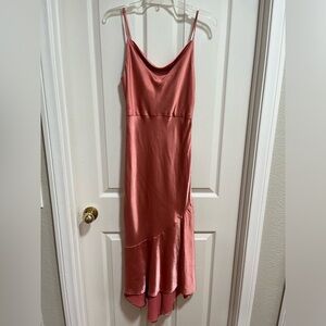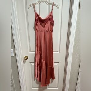 Satin Pink Formal Slip Cowl Neck Midi Dress Sz XS