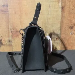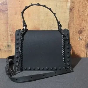 Elevate your style with this elegant black studded crossbody bag. Perfect for any occasion, it features a chic chain detail with a secure clasp closure
