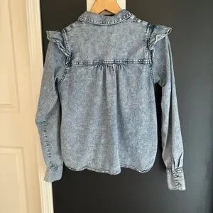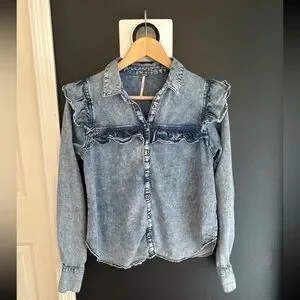 Free People “Samantha Ruffle Buttondown” Denim Shirt Size XS oversized