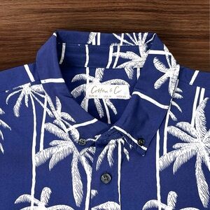 Cotton & Co. Men’s Navy Blue Tropical Palm Tree Shirt. Size Medium