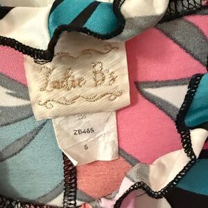 Zadie B's ruffled maxi dress with a bold leaf pattern. Features shades of pink, red, teal, and black. Perfect for a statement look. Very lightweight and comfy. Pullover style.