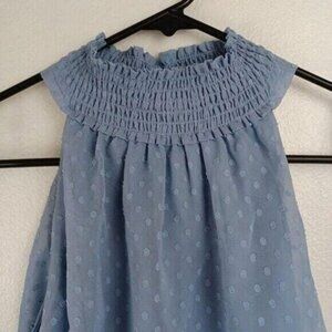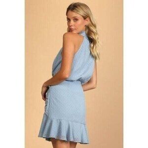 Lulus Womens Blue Halter Dress With Polka Dot Pattern & Ruffle Hem Size L