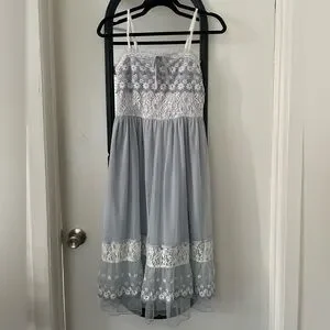 Chic dress featuring delicate lace and embroidered details in gray and white