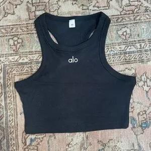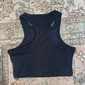 Sleek and stylish black tank top. Ideal for workouts or casual wear. Features a comfortable fit.