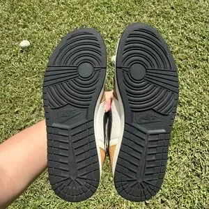 These Air Jordan 1 Retro High OG "Rookie of the Year" are inspired by Micheal Jordan's iconic Rookie of the Year season in 1985. They feature white leather panels, classic black accents, and premium golden-harvest suede. These sneakers do not have a box but are in excellent condition.