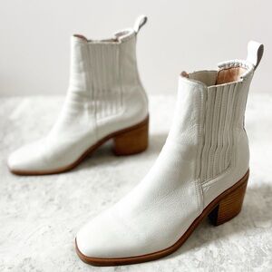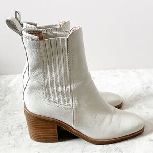 Anthropologie Silent D Naydo Chelsea Heel Boots 37 White Leather Southwestern