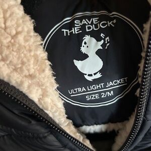 Save the Duck Black Giga FAUX Sheepskin Hooded Jacket Women's M