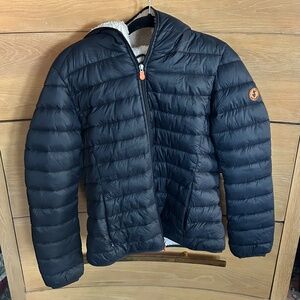 Save the Duck Navy Blue Women's Giga FAUX Sheepskin Hooded Jacket Women's M