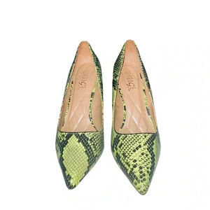 ROUGE* Women’s Neon Green & Black Snake Print Pointed Heels Size 10