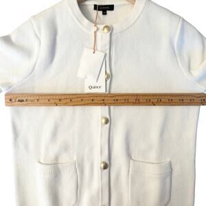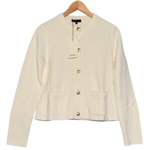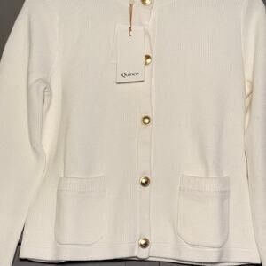 Quince Women’s Organic Cotton White Cardigan XS w/ Gold Buttons & Pockets
