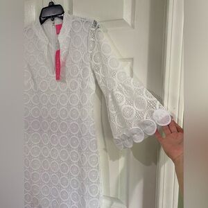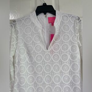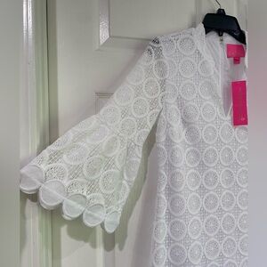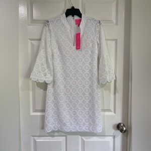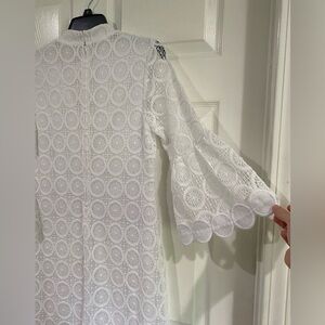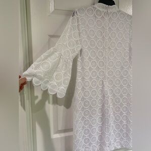 Lilly Pulitzer White Stretch Lace V-neck 3/4 Sleeve Shift Dress Size 4 Bridal