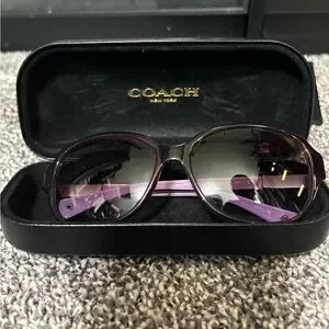 Elevate your look with these stylish Coach sunglasses. Featuring a luxurious purple frame, they add elegance to any ensemble.