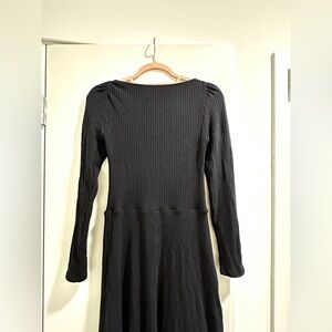 Reformation Banks Black Knit Ribbed Long Sleeve Midi Dress Size M