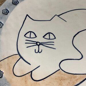 Jolicoeur Studios Whimsical 9" Art Pottery Cat Plate made in Nova Scotia Canada Signed