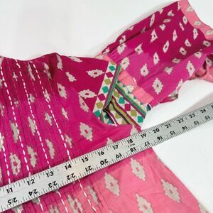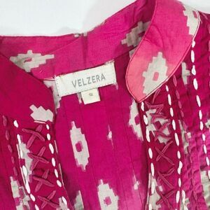 Velzera Tunic Top Womens Small Multicolor Geometric Bell Sleeve Pintuck Boho