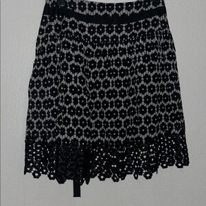 Elegant black and white floral lace skirt Atina Christina ! Very pretty ! Attached belt. Dress up or down! Made in the US .70 percent cotton and 30 percent silk , fully lined
