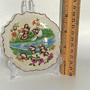 Vintage 4" Dish Ducklings Trinket Dish Easter Spring Made In Japan