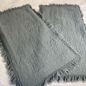 Shabby Chic Quilted Pillow Shams – Set of 2, Dusty Blue Fringe, 21x37" Standard/Queen