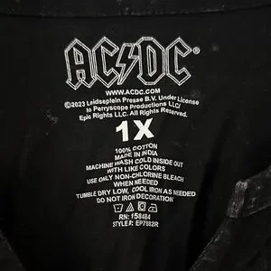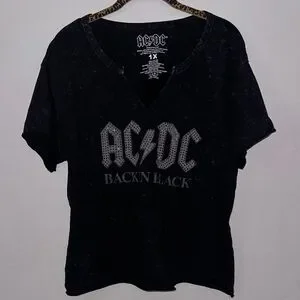 Stylish AC/DC tee with iconic logo. Features a comfortable V-neck design.