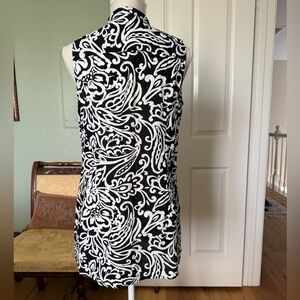 This is an elegant sleeveless blouse with bold black and white design by Charter Club. It is made of 100% cotton and it’s a size 8. Features a stylish pleated front. In excellent vintage condition.