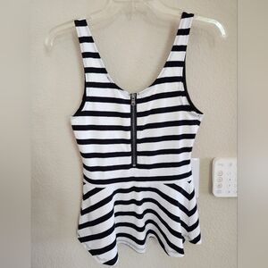 Vintage Y2K Express Peplum Babydoll Tank Top Black & White Stripe Zipper Size small NWT. Stripes line up beautifully! Unworn, TRUSTED SELLER