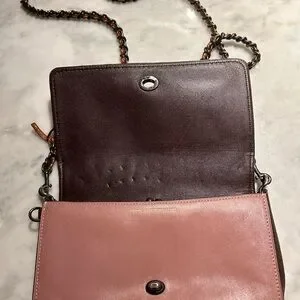 Elegant pink leather crossbody bag with a stylish chain strap. Perfect for any occasion.