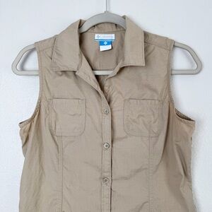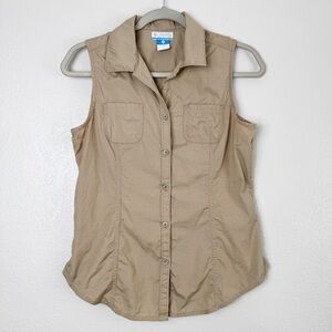 Columbia beige tan sleeveless front pocket button down S