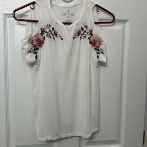 American Eagle Soft and SexyWhite floral embroidered top. Size XSmall Excellent condition cut out shoulder