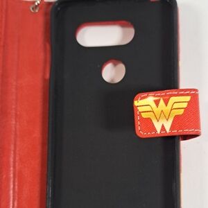 Show off your style with this Wonder Woman themed phone case. Featuring vibrant red, yellow, and blue colors, it's perfect for fans of the iconic superhero.