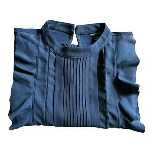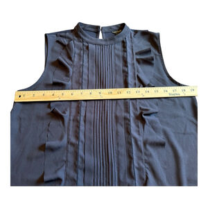 Women's Ann Taylor Navy Ruffle Pleated Sleeveless Blouse M