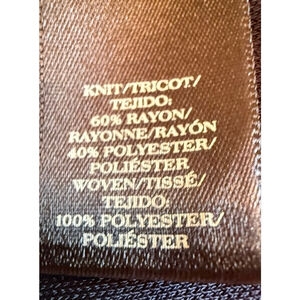 This excellent condition Ann Taylor sleeveless blouse in navy (dark sky) features a mock neck with a keyhole and button closure at the back. The front is adorned with vertical pleats down the center and ruffled panels on either side. The knit fabric is 60% rayon and 40% polyester, while the woven fabric is 100% polyester. It is a size M, measuring approximately 19 inches across the chest and 23.5 inches in length,. No visible imperfections are present.