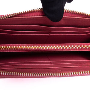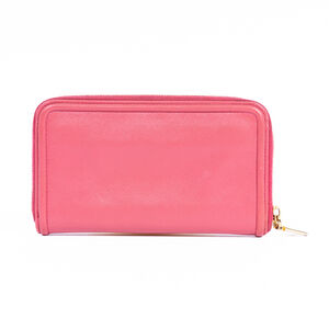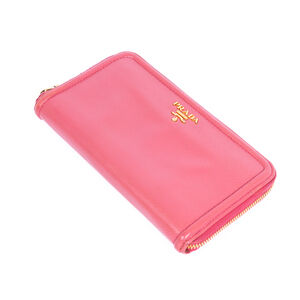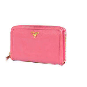 Prada Wallet Zip Around Wallet in Pink Saffiano Lux Leather and Gold hardware. The product is in Very Good Condition (AB).