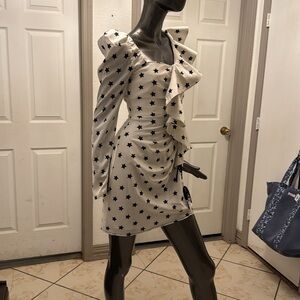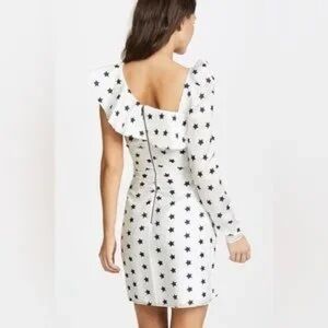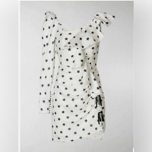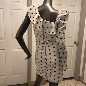 Elegant midi dress with black star pattern. Asymmetrical design with unique flair. Perfect for stylish occasions. • Self-Portrait Dress