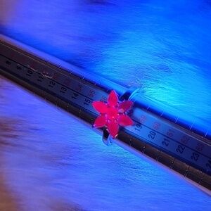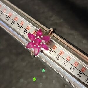 Elegant silver ring featuring a flower design with vibrant genuine Ruby gemstones.