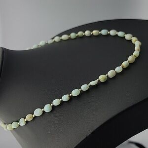 Natural Peru Blue Opal Gems 6 to 8mm Smooth Nugget Beads 17" Silver Necklace