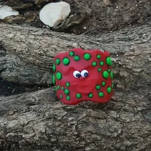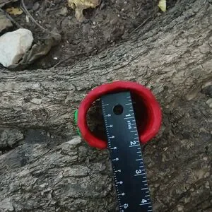 Bracelet cuff face silly colored in the red and neon green dots. This bracelet is handmade by me. Please don't force to stretch or hand push on the cuff may be broken. See photos of size with measure