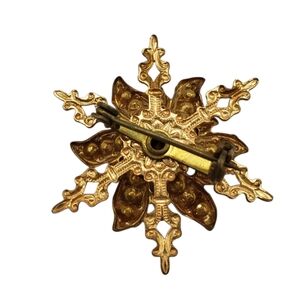 This exquisite brooch features a stunning snowflake design adorned with pearls and sparkling accents. Perfect for adding a touch of elegance to any outfit. No markings