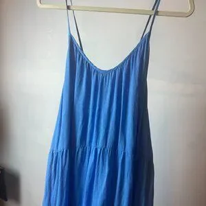 LAST PHOTO IS A STOCK PHOTO SHOWING THE DRESS IN WHITE, THE DRESS I AM SELLING IS THE VIBRANT BLUE COLOR SHOWN IN THE OTHER PHOTOS!