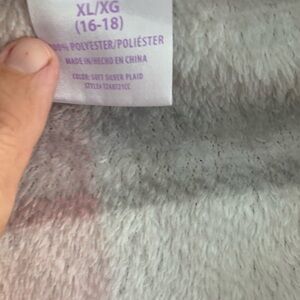 Soft plaid robe with a cozy design. Features a tie belt and plush collar. Ideal for lounging in comfort. Size CL. Measures approximately 22” underarm to underarm, sleeve 23” and 47” top to bottom. Yes it does have pockets. Great warm staple for a cold winter predicted!