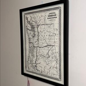 Elegant framed vintage map of Oregon and Washington. Perfect for home or office decor.