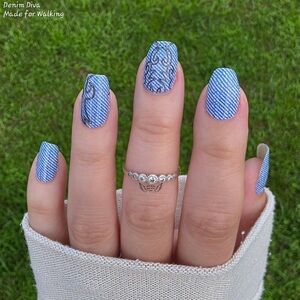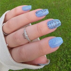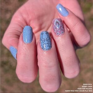 New in package Color Street nail strips. Exclusive “Denim Diva” is a two-tone blue twill pattern with a crème finish. This shade was part of the March 2025 Color Play box, Wild West. I will include a nail file and alcohol prep pad with purchase.